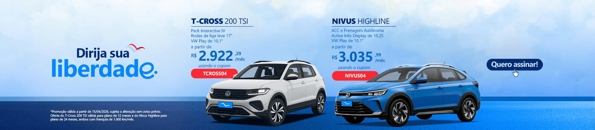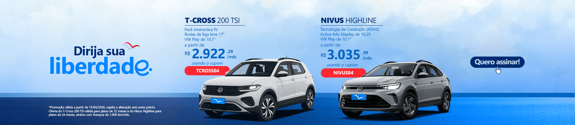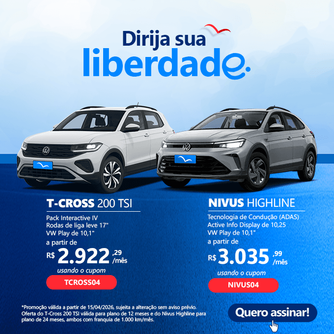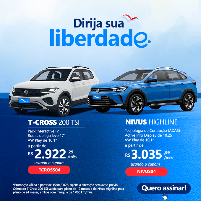 *Custos baseado para o modelo Volkswagen Nivus Highline, no período de 12 meses e 1.000 KM mensal.